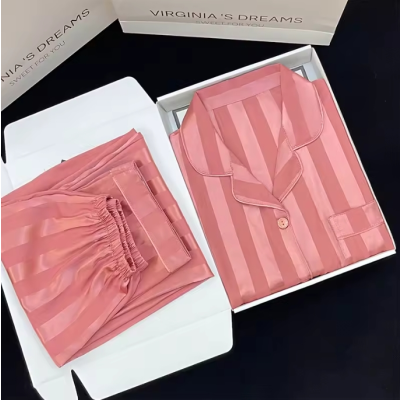 Mnemo Women’s Pink Satin Silk Sleepwear – Short Sleeve Button-Down Nightshirt with Pocket, Elegant and Soft Loungewear