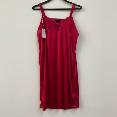 Mnemo Women’s Red Satin Nightdress – Elegant Sleeveless Sleepwear with V-Neck and Lace Trim, Soft Lightweight Loungewear